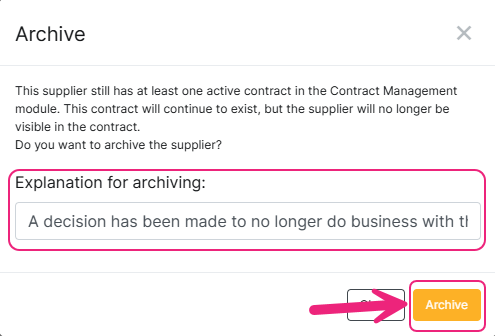 To confirm the archiving, click the yellow Archive button.