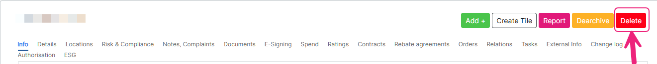 When deleting a vendor, all (linked) data, including Contracts, Vendor Rating scores, information requests, contacts and documents, will be permanently deleted.