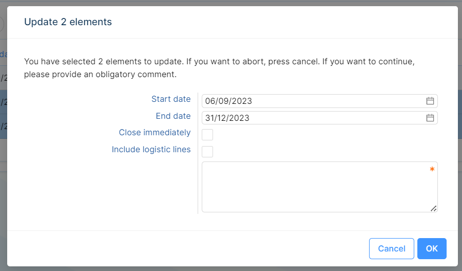It is possible to update information via the pop-up screen. It is mandatory to comment on the reason for the adjustment.