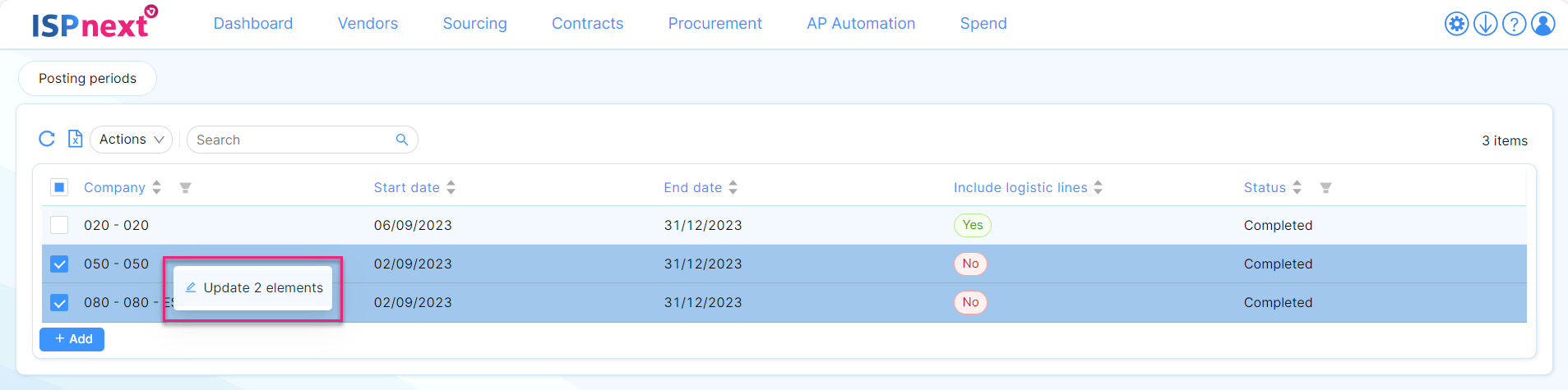 Select boxes added to posting periods