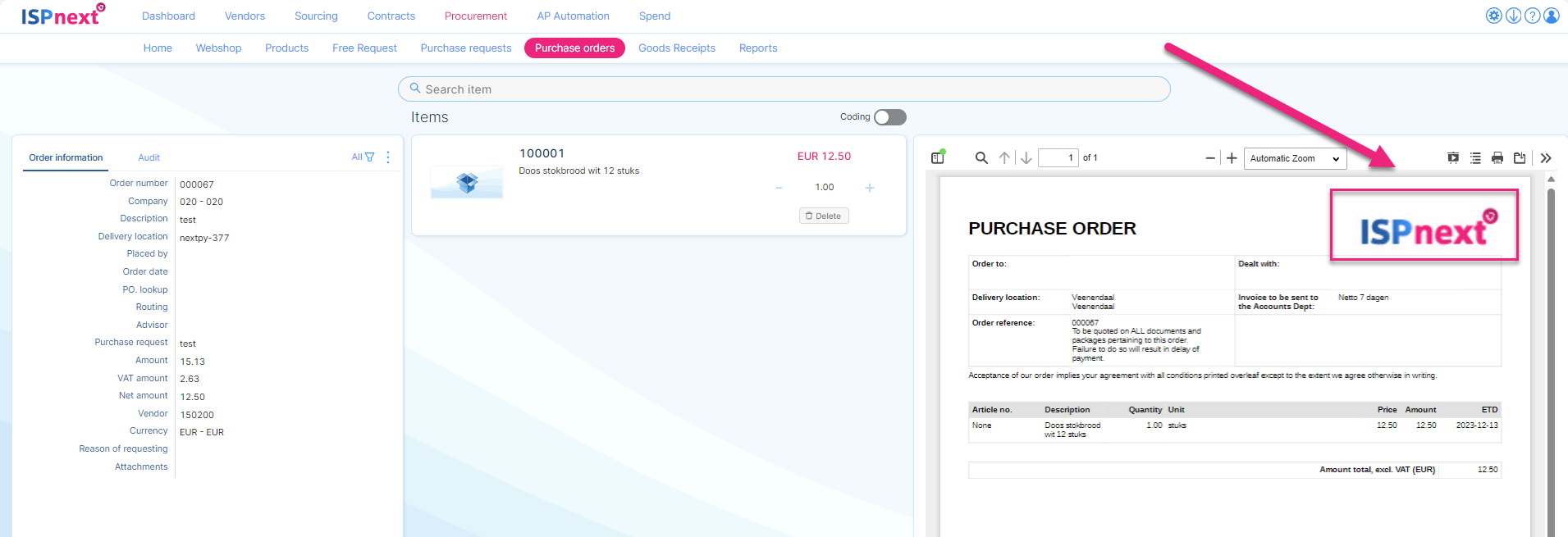 From now on it is possible to load the company logo on a purchase order.