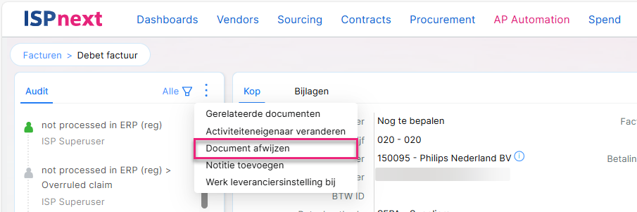 Factuur afwijzen