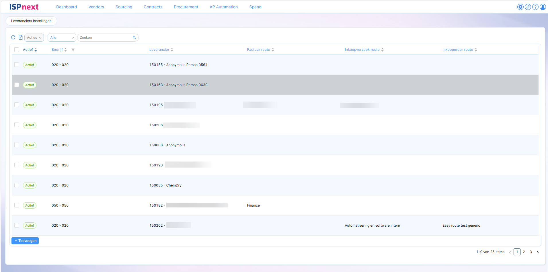 | Actief | Hiermee kan de leverancier geactiveerd worden in het gekozen bedrijf. |