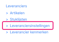 Via Setup → Leveranciers is het menu Leveranciersinstellingen beschikbaar.