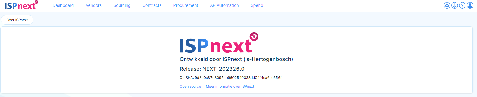 Om het actuele buildnummer te achterhalen, klik op het Setup icoon → Platform → Over ISP-Next