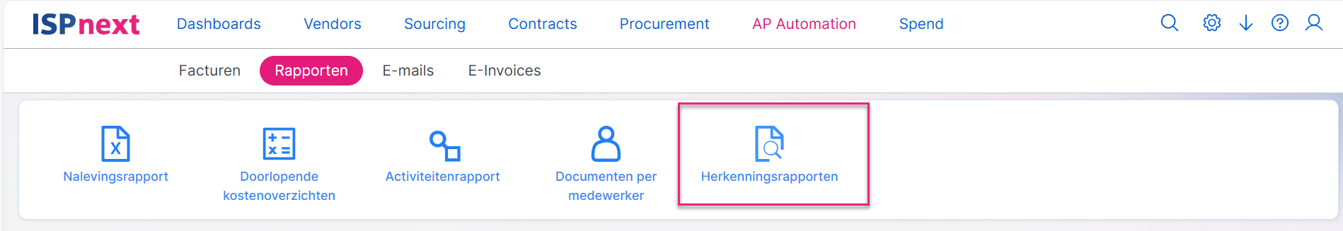 Klik op het menu-icoon AP Automation → Rapporten → Herkenningsrapport
