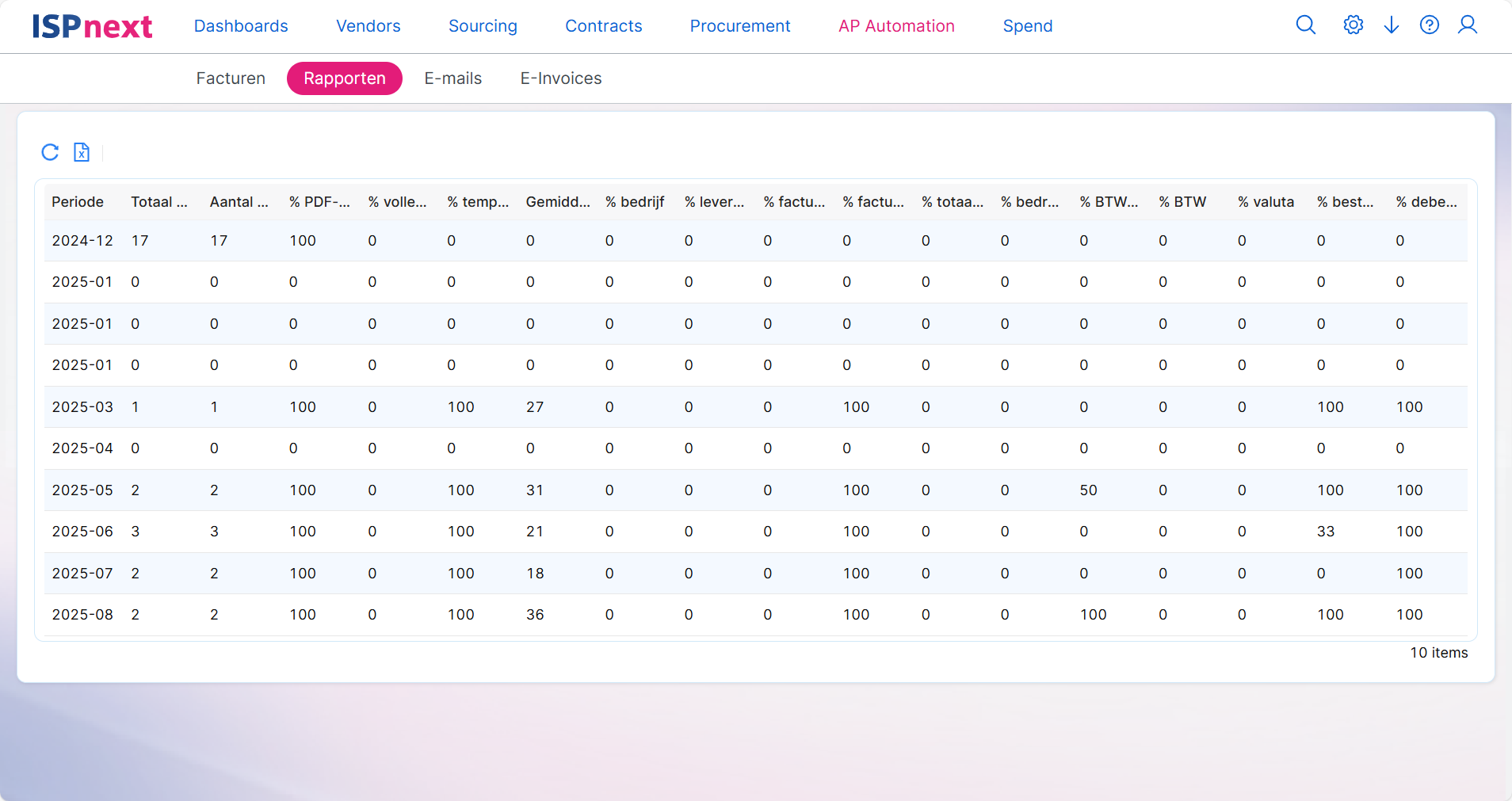 Het rapport kan vanuit de applicatie worden geëxporteerd naar Microsoft Excel, zodat analyses buiten het systeem eenvoudig mogelijk zijn.