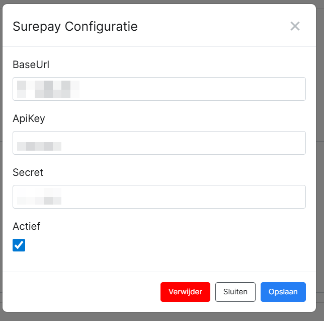 - Open de configuratie voor SurePay.