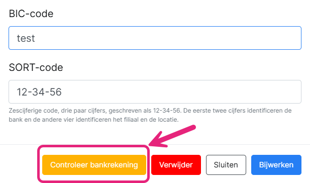 - Bij de bankrekeninggegevens verschijnt een extra knop om een SurePay‑controle uit te voeren.
